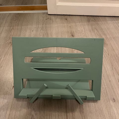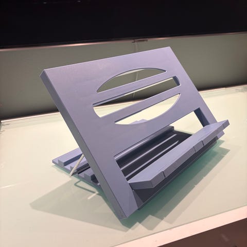 Stativ for å feste papirer eller en bok selges billig. Det kan monteres på et bord eller skrivebord og justeres til fleksibel høyde.