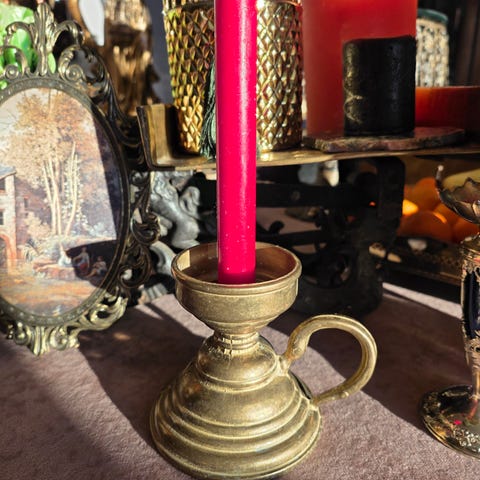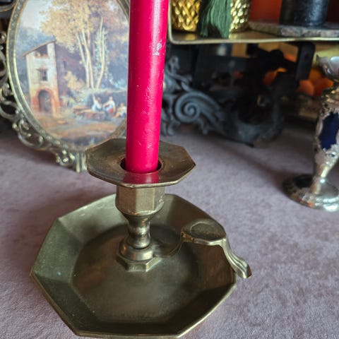 Vintage lysestake i messing og glass