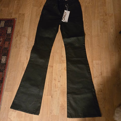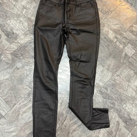 ONLY skinnbukse i svart farge, størrelse XXL med midjemål W33. Laget av skinnmateriale, designet for kvinner.