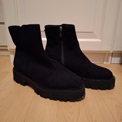 Rieker støvler i størrelse 40 med svart farge. Støvlene har en innvendig fôring som gir ekstra varme og komfort. Laget av materialer som gir slitestyrke og egnet for kaldere værforhold.
