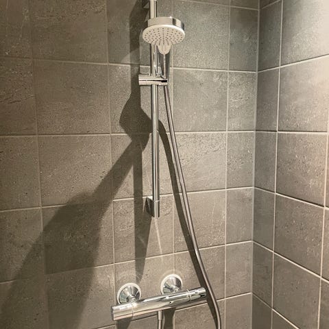 Grohe Precision dusjbatteri med termostatstyring. Produktet er designet for enkel montering og bruk, og passer til standard dusjsystemer.