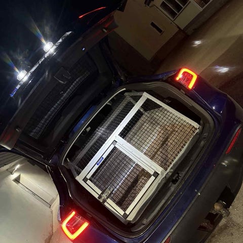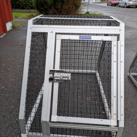 Spesialtilpasset hundebur til Tesla model y. Passer for store hunder som labrador. God og stødig bur som kan festes med stropper i bilen. Netting over hele buret, god luftsirkulasjon. Har blitt brukt lite, ingen skader. Kan følge med en støtfangerbeskytter fra MIMsafe.