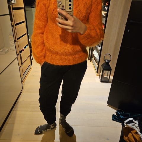 Juno genser hjemmestrikket i str. S.