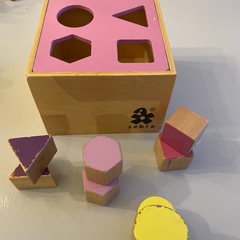 BRIO trepuslespill med ulike former i forskjellige farger. Puslespillet består av treblokker formet som sirkler, trekanter, firkanter og stjerner i rødt, blått, grønt og gult. Egnet som pedagogisk leke for barn for å lære former og farger.