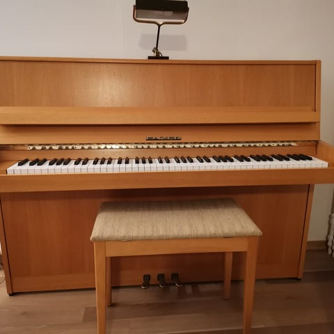 Stagepiano med stativ og pedal. Noen tangenter henger seg opp som vist på bildet. Må renses/byttes eller bruke som deler. Stativet er låst i en fast høyde med skrue og mutter.