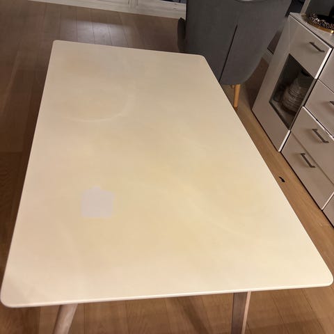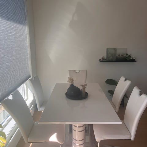 Selger et praktisk og stilrent spisebord i hvit farge.