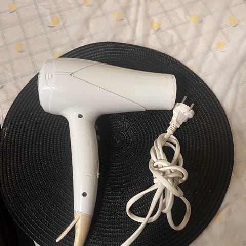 Grundig hårføner i svart og kobberfarge. Elektrisk hårføner med ledning, egnet for tørking av hår.