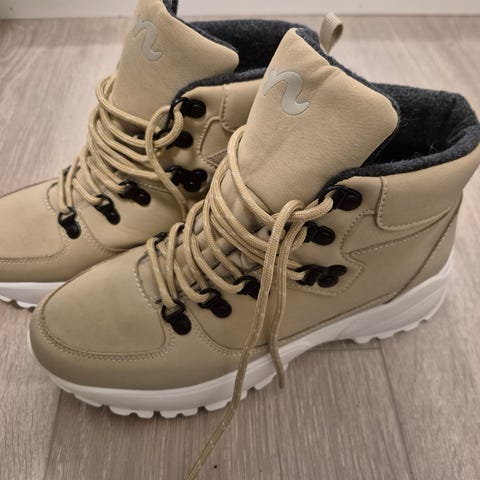 Tamaris vinterstøvler i størrelse 40, i lysebrunt semsket skinn. Støvlene er foret og har snøring foran, solid såle med godt grep.