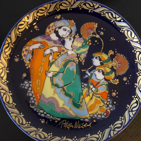Rosenthal dekorasjonskrukker laget i porselen med detaljer i gullfarge. Settet består av tre krukker i ulike størrelser med dekorative håndtak og ornamenter. Passer til dekorasjon og oppbevaring. Har ikke blitt brukt men heller vært som en dekorativ gjenstand på kommoden vår.