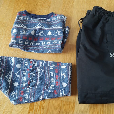 Jakka er str 140 og buksene 134. Dattera brukte de sammen.