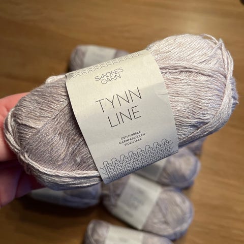 Sandnes Garn Line 5x50 gram farge 1015 morning mist, 1 nøste blush pink 4033, 1 nøste baby blue 5930, 1 nøste sunny lime 9825, 1 nøste mørk lilla ( utgått farge). De uten magebelte veier også 50 gram.