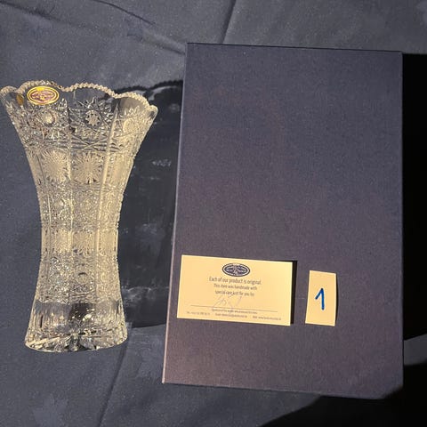 Krystall karaffel med dekorativt mønster. Karaffelen har en avtagbar tut og er laget i klart krystallglass. Passer til servering av drikke.
