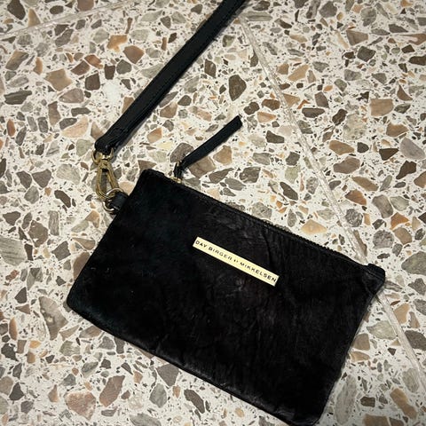 Flott clutch veske med skinn ig pels.