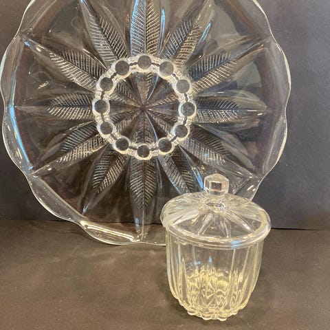 Asjett og kaffeskål i gul Marie. Brunt stempel.