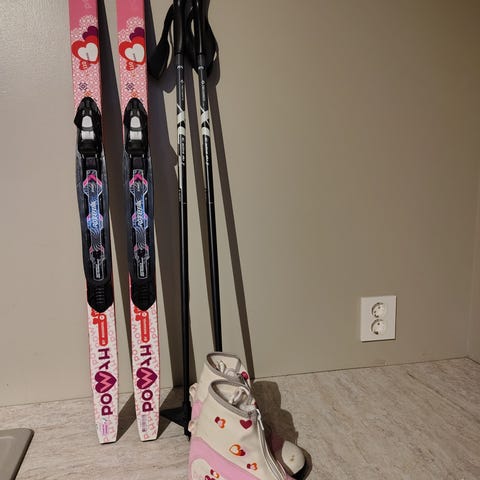 Komplett skipakke med felleski til junior. Smøring ikke nødvendig, lite brukt, selges fortrinnsvis samlet.
