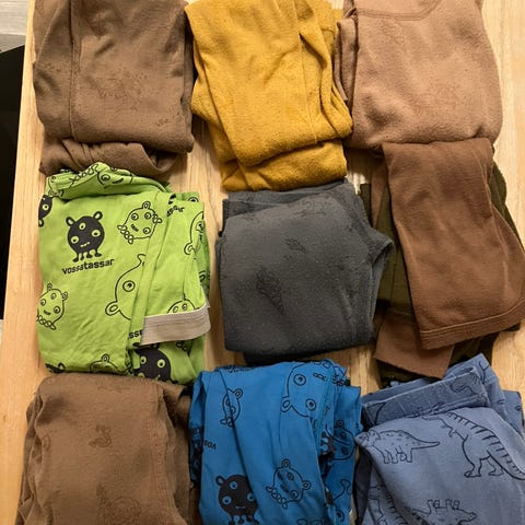 Selger en pakke med superundertøy str 6-8 år, for kr 450.