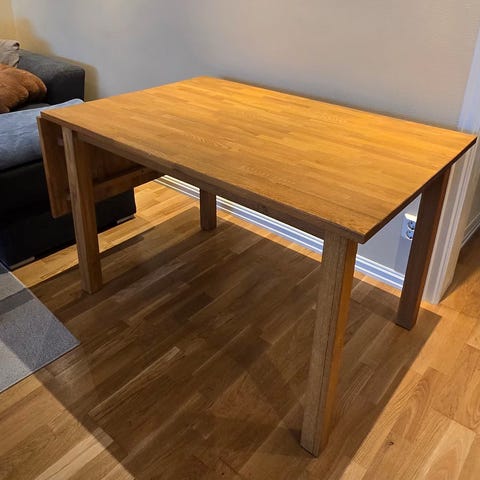 Godt brukt eikebord til salgs.