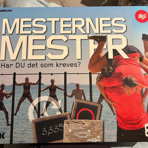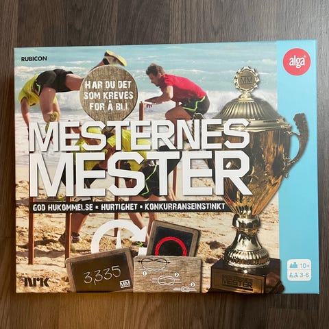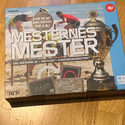 Ubrukt. Alga Mesternes Mester Brettspill med ulike spillkomponenter inkludert kort, brikker og spillebrett. Spill for 2-6 spillere, egnet for aldersgruppen 8 år og oppover.