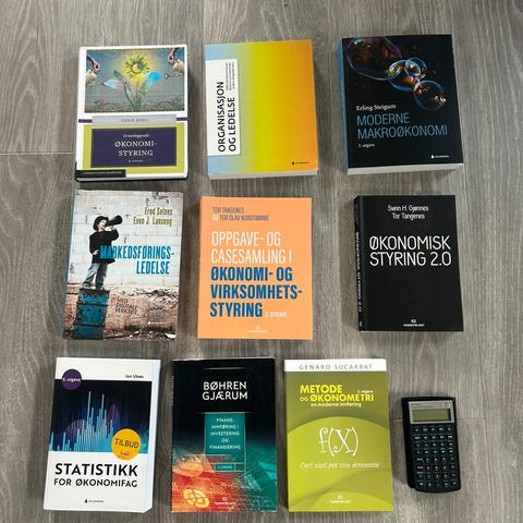 Diverse bøker for øk adm studiet på BI