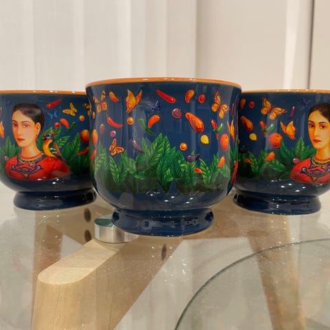 4 koselige tekopper med skål fra Indiska. Lite brukt , og fremstår som nye.