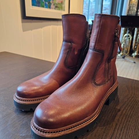 Tamaris vinterstøvler i størrelse 38 med brunt materiale. Støvlene har en myk og varm fôr som egner seg for kalde værforhold. Yttersålen har mønster for bedre grep.