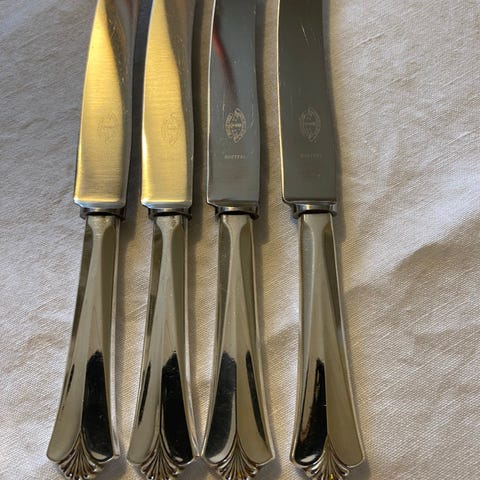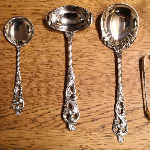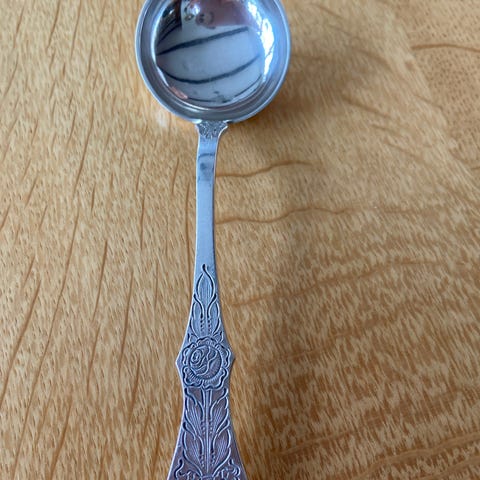12 dessert skjeer i Rådhus med vifte sølv.
