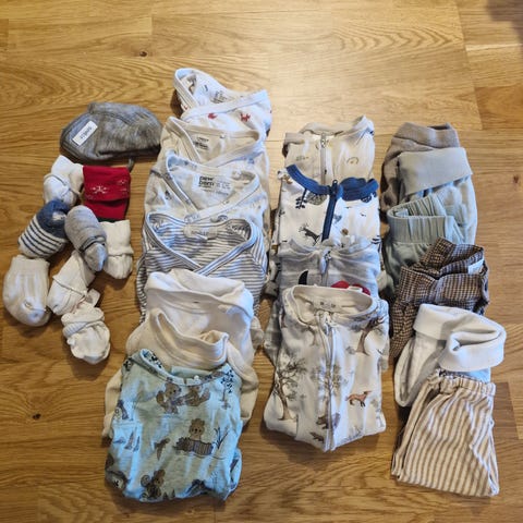 5 pysjer, hvorav 4 med fot og 4 med glidelås.
