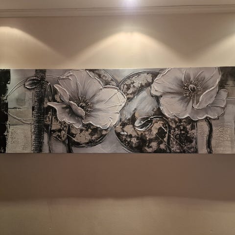 Abstrakt veggkunst med organiske former i jordfarger som beige, hvit og grønn. Dekorativt kunstverk egnet for moderne interiør, kjøpt inn til visning etter anbefaling fra boligstylist. Førpris med rammene er over 1200 kr.