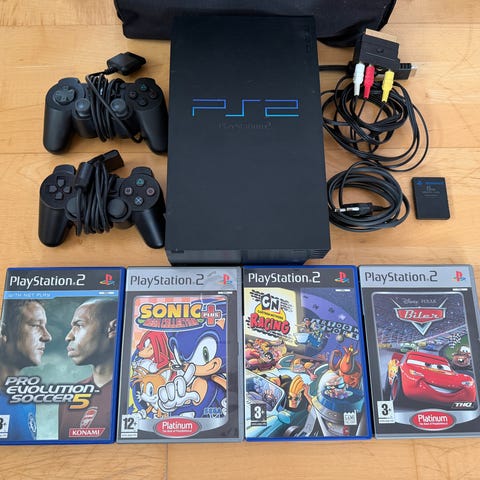 Sony PlayStation 2 spillkonsoll med to kontrollere og minnekort