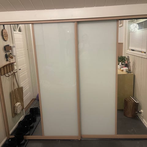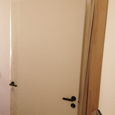 3 stk Scanflex dørblad som passer til døråpning 90 x 210. Vi mener dørene er i Bris-serien. Fargen er klassisk hvit. Selges samlet for kr. 2.000 inklusive dørklinker. Den ene døren har en liten skade nederst - se bilde. Dørene må hentes.