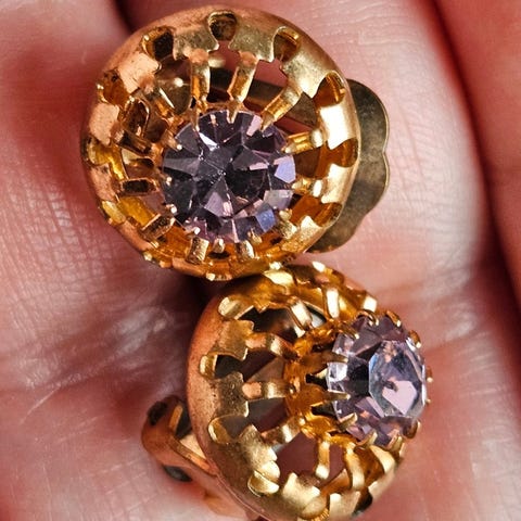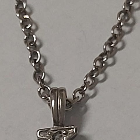 Lite dekorativt anheng formet som bokstaven “J”, i gullfarget metall med klar dekorstein. Ikke magnetisk. Ingen stempel. Vintage preg fra 90-tallet. Pent brukt.