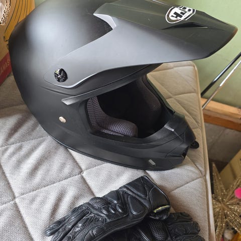 HJC C70 hjelm, sort, med solvisir og to par handsker, selges 1000 kr