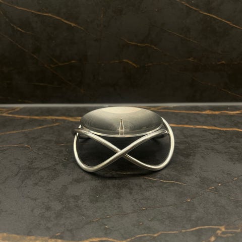 Lysestaker to stk. til kubbelys ny pris er ca. 4000kr. De ligner litt på Georg Jensen. De selges samlet for 750kr