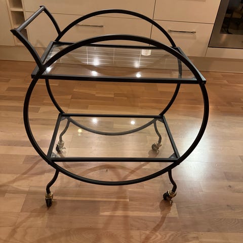 Pent brukt salongbord med hylle til aviser. Må hentes