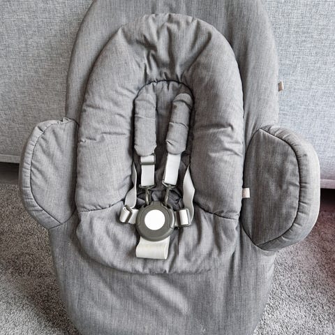 Selger svært pent brukt babytilbehør til Stokke Steps spisestol/barnestol. Nyfødtinnlegg medfølger.