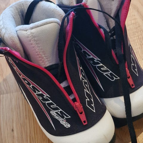 Selger et par svært lite brukte, alpinstøvler til barn.
