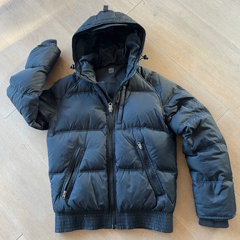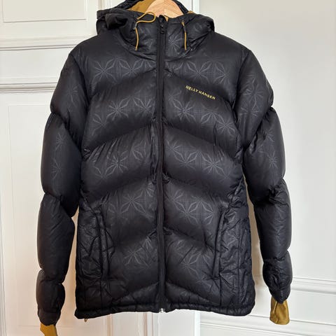 Veldig varm vinterjakke i str XS/SP. Den er 80 dun og 20% fjær. Pen brukt, ikke noe slitasje på armer eller på kanten. Sort med brun kant og brunt for inni. Lomme på innsiden. Størrelsen passer til dame/ ungdom fra 13-14 og oppover. Kan sendes for kr 70 med PostNord.