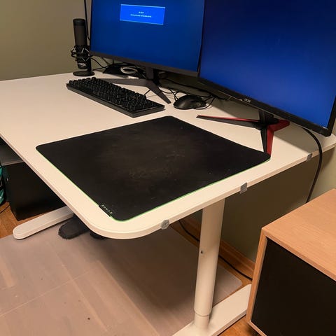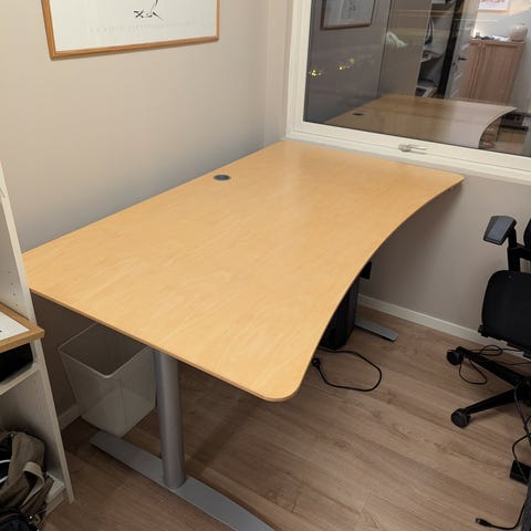 Skrivebord/pult med elektrisk heve-/senke-funksjon. Ca. et år gammelt, pent brukt. Selges pga. flytting. Nypris 2999kr.