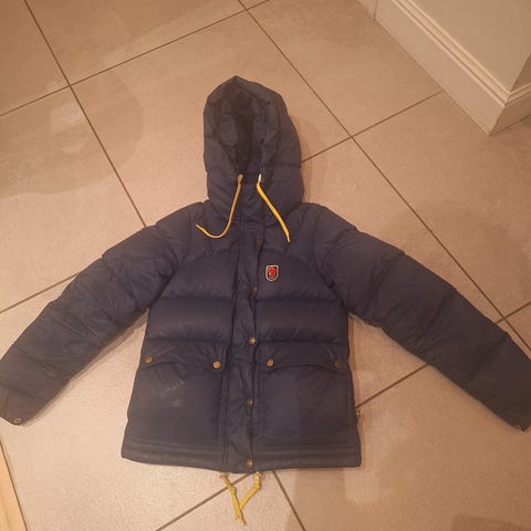 Fjällräven Expedition Down Lite Jakke i damestørrelse S. God og varm dunjakke som ble kjøpt for noen år siden, men har bare blitt liggende ettersom jeg har samme jakke i en annen farge. Jakken er som ny med merkelappen på. Farge: marineblå. Det første bildet er lånt.
