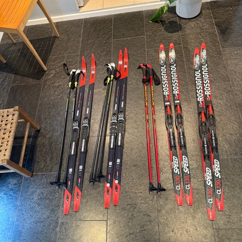 Obs, veldig godt brukt med større riper og såle som har løsnet litt bak på ene skien (kan enkelt limes). Fungerer fortsatt veldig fint.