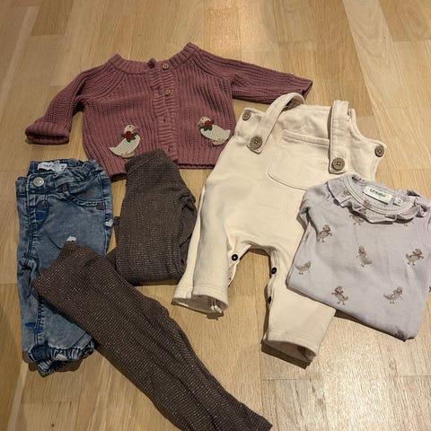 To søte sett - et fra Cubus og et fra Newbie og en bukse fra KappAhl. Alt er uten flekker og slitasje. Størrelse 62.