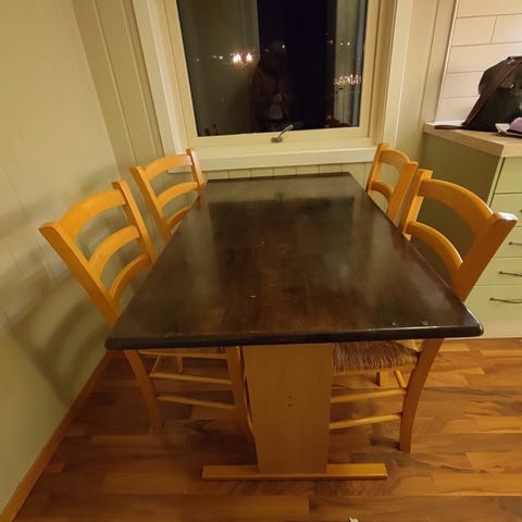 Dette er et bord vi fikk på Finn, som gis videre da det ble for lite for leiligheten vår. Fungerer fint som hobbybord, til kontor eller som et midlertidig spisebord?