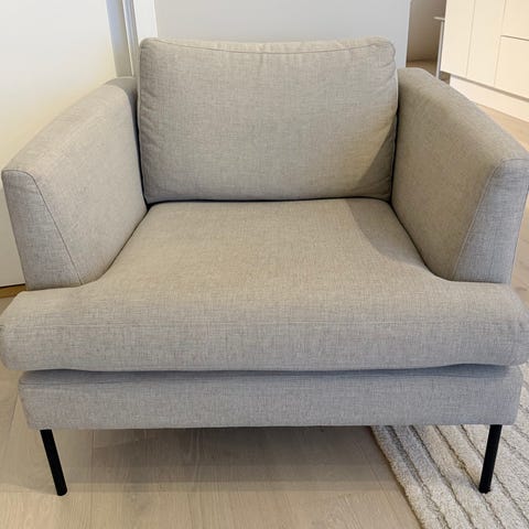 Selger denne lenestolen fra Ikea ettersom den blir lite brukt og er litt stor for leiligheten vår.