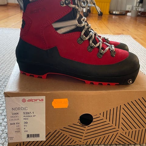 Selger Alpina Alaska XP skisko i størrelse 44 med Rottefella Xplore bindingssystem. Pent brukt og godt ivaretatt. Varm og stødig fjell-/turskisko som passer godt til lengre turer. Selges fordi de ikke blir brukt. Kan hentes eller sendes.