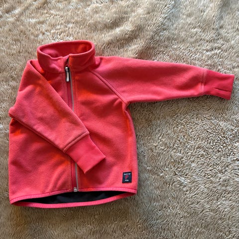 Polarn O. Pyret fleecejakke i størrelse 74 for jente. Jakken er rosa i farge.