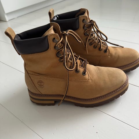 Svært pent brukte Timberland støvler i størrelse 40. Støvlene har en lys brun farge og er laget av skinnmateriale.