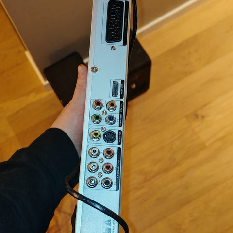 Pent brukt Panasonic DVD spiller til salgs, med HDMI og LAN utganger. Har med HDMI ledning, og LAN ledning og strøm kontakter ellers. Kan spille både VD plater og DVD plater.