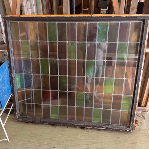 Vindusramme med glass og karm. Farge hvit. Materiale tre. Passer til montering i vegg for lysinnslipp. Kan åpnes.