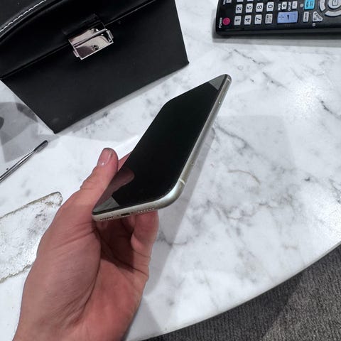 Apple iPhone med 64 GB lagringskapasitet, hvit farge. Mobiltelefon med standard spesifikasjoner for lagringsplass og farge. Batteri på 71 %