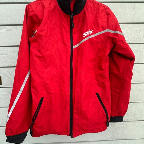 Swix jakke for barn i størrelse 12 år, jeg synes vel de ikke er kjempe store i str så vil si 10-12 år. Kommer an på barnet, Jakken har glidelås og refleksdetaljer, egnet for ulike sportsaktiviteter.